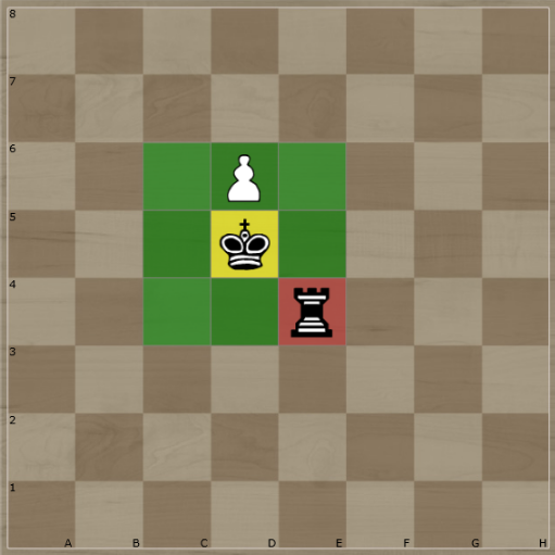 So, the King on the “d5” square in diagram 2, could move to any of the GREEN squares.